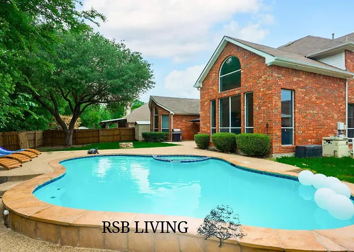 **The Captivating 6Br 3Ba Holiday Home With Pool & Fire Pit is a delightful retreat nestled just 40 km from the bustling Dallas Love Field. This stunning home harmoniously blends luxury and comfort, making it the perfect oasis for families and groups looking to escape the city while still enjoying easy access to Dallas.**